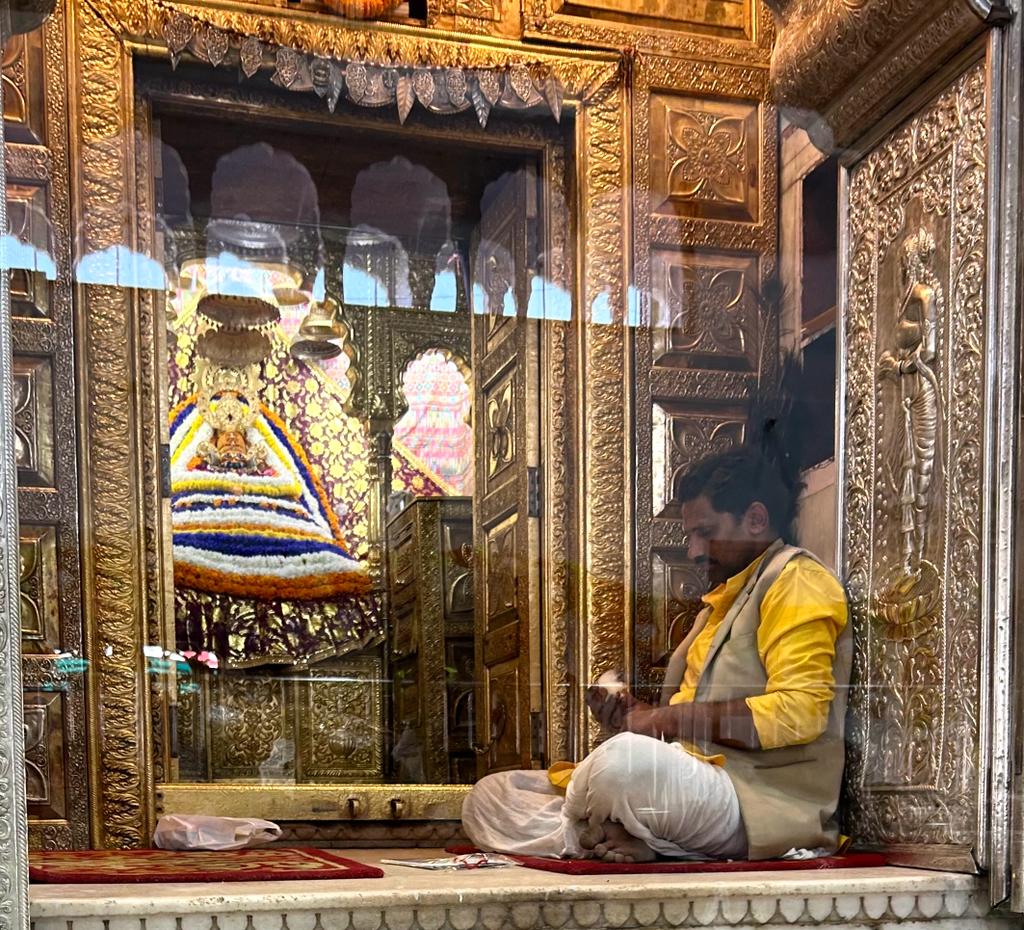 The temple is built in traditional North Indian style with a beautifully decorated sanctum and prayer hall. The interiors are adorned with marble work, bright lights, and devotional decorations. The peaceful atmosphere enhances the spiritual experience of visitors.